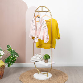 Rose Raflı Metal Ayaklı Konfeksiyon Askılığı Ayaklı Askılık Raflı Elbise Askılığı Kıyafet Askılığı