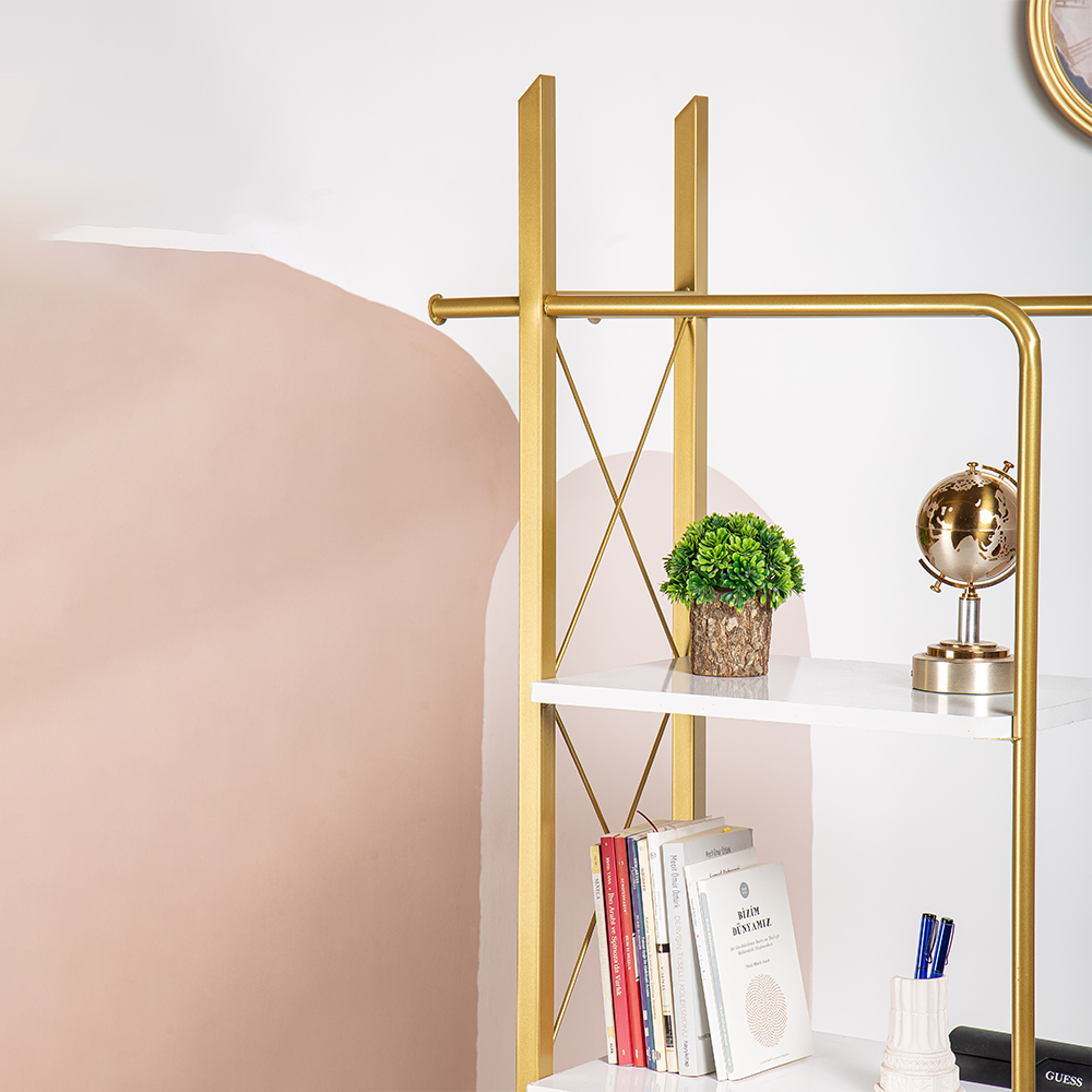 ARES DEKORATİF METAL MOBİLYA GOLD 4 KATLI KİTAPLIK