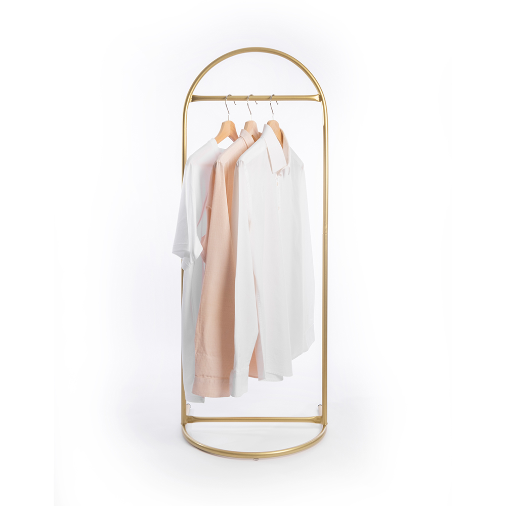 Butik Stil Oval Konfeksiyon Askılığı Altın Renk Özel Askılık ölçüleri BOY = 121 CM Genişlik = 47 CM Derinlik = 38 CM Askı Genişliği = 39 CM Askı Yüksekliği = 100 CM