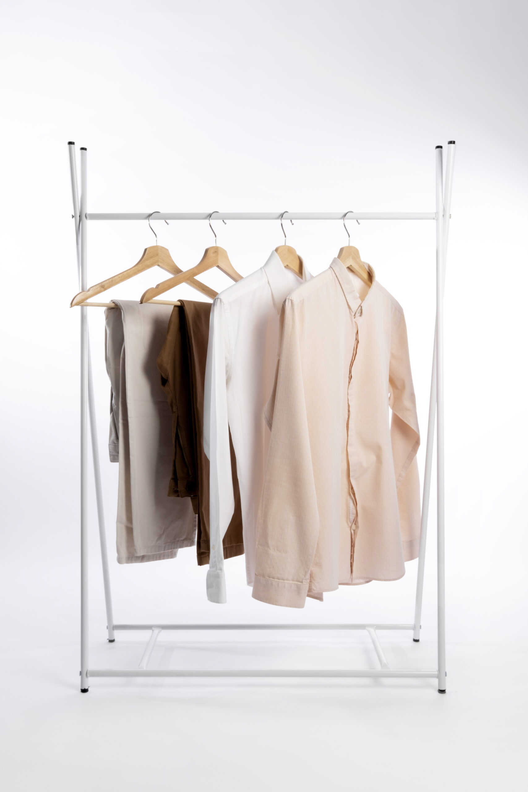 İngiliz Model Ayaklı Askılık Konfeksiyon Askılığı Beyaz Elbise Askılığı Kıyafet Askılığı