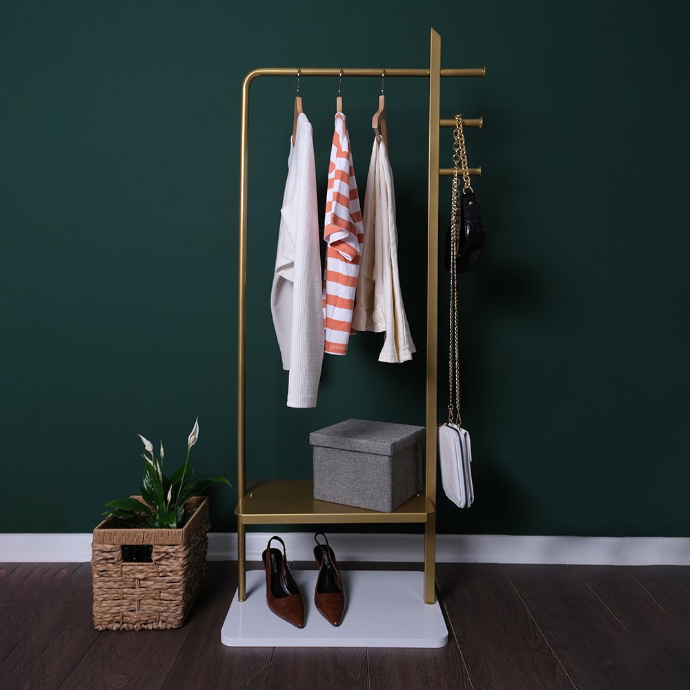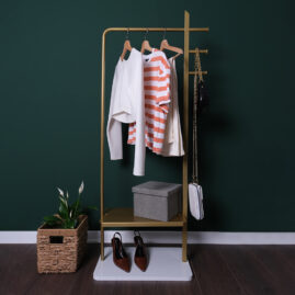 Poseidon Konfeksiyon Askılığı , Gold Elbise ve Kıyafet Askılığı Ürünün ölçüleri BOY = 132 CM / Genişlik = 47 CM Kulaklar ile birlikte Genişlik = 58 CM / Derinlik = 34 CM / Askı Yüksekliği = 105 CM / Taban Genişliği = 50 CM